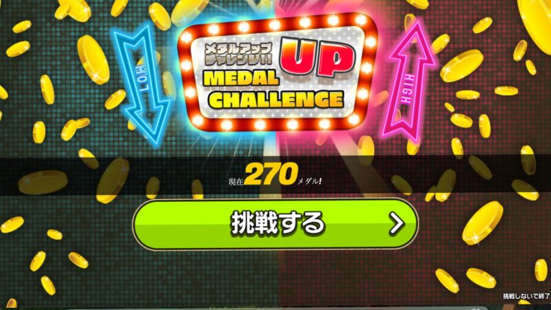 メダルアップチャレンジにも種類があり、今回は必ず当たるイベントだと推測