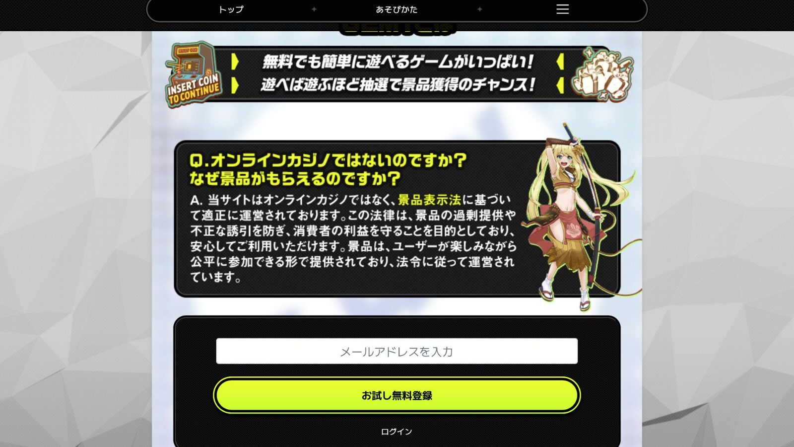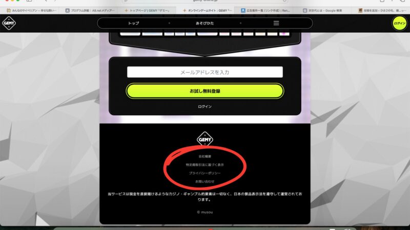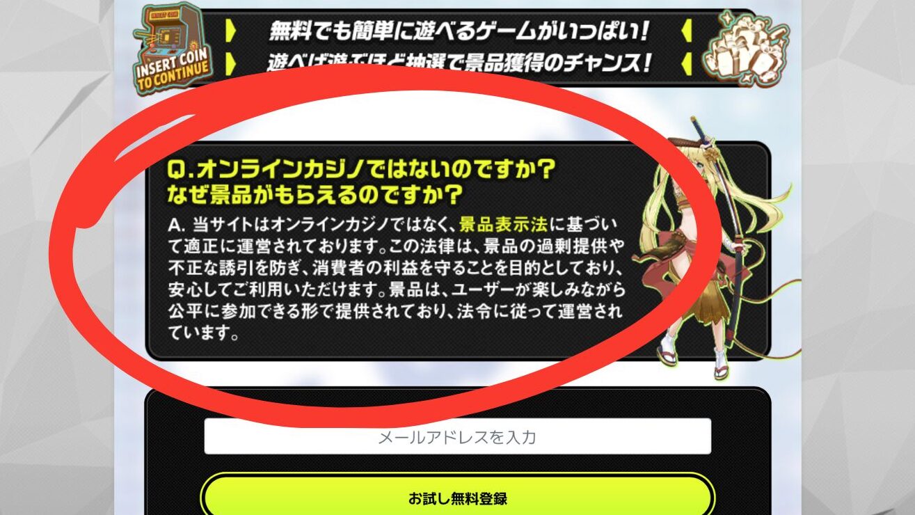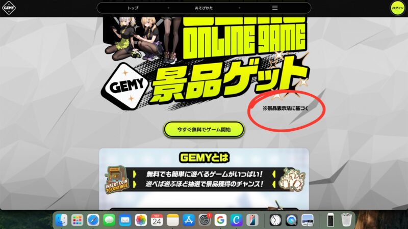 公式サイトにも記載されていますがGEMYは現金を直接賭けるようなカジノ・ギャンブル的要素は一切なく、日本の景品表示法を遵守して運営されているので違法ではないことが伺えます
