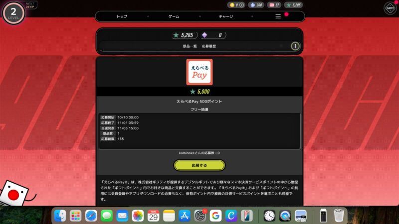 ゲームで景品チャンス!?GEMY:実際にやってみた