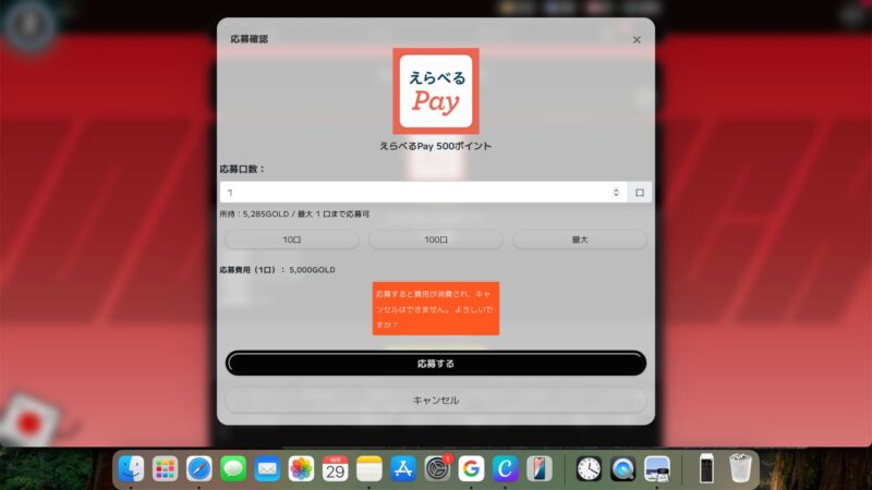 このゴールドを使ってえらべるpay500ポイントに応募してみましょう