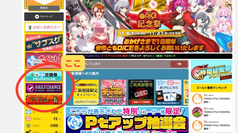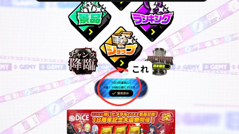 | デイリー特典 | デイリーチャンス | 1日2回の運試し |
