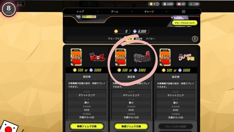 GMYEを進めていくと9レベルに上がる条件として設定券を使う場面に遭遇します。ただ初心者がいきなり設定を使えと言われても大切なジェムを5000も消費するのはためらってしまうのではないでしょうか?ということで設定券のメリットと交換するタイミングを実際にやりながら説明していこうと思います!