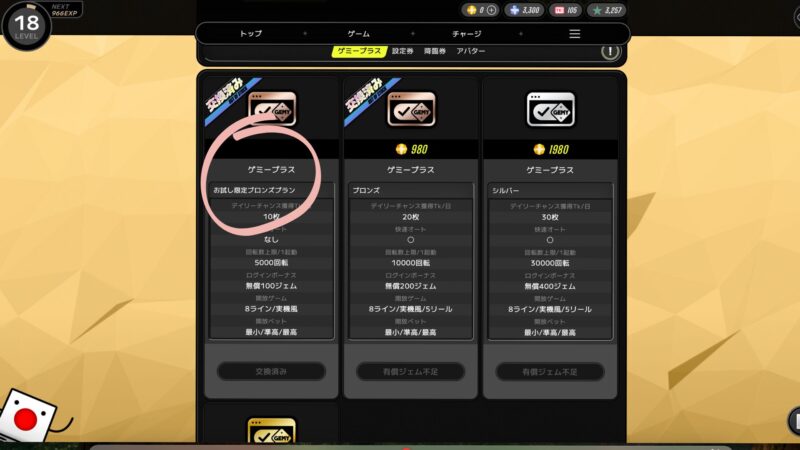 限定的にはなりますが、レベル上げの条件で無料お試しブロンズプランに入れる機会があります。